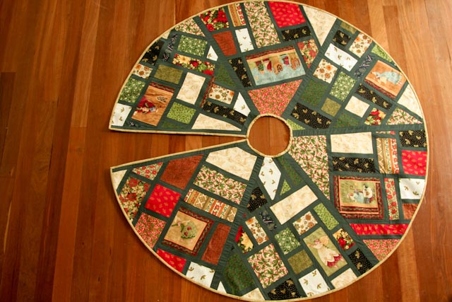 I ended up deciding not to do any fancy quilting for the Tree Skirt. I found a cheap green queen sized bed skirt /valance at an op shop and used this as the underside fabric. For the middle layer I decided to use a thickish felt.
